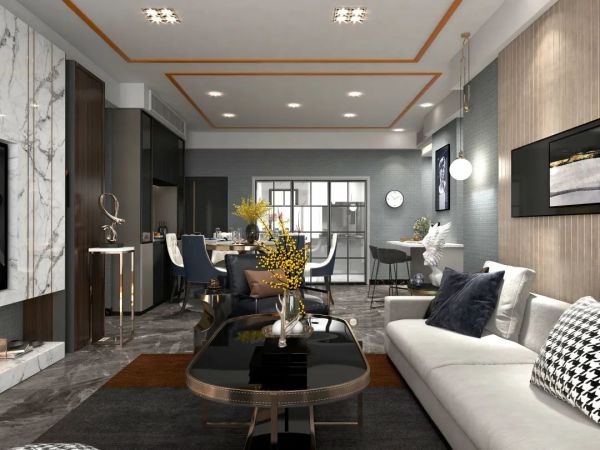现代轻奢风格,利用化“零”为“整”的设计理念,舍弃掉多余的家具饰品,让光线可以更好的穿透,让家中每一个角落敞亮且静谧。通过色彩的深浅对比,拉伸空间的层次感,也使整体空间更加生动、活泼。