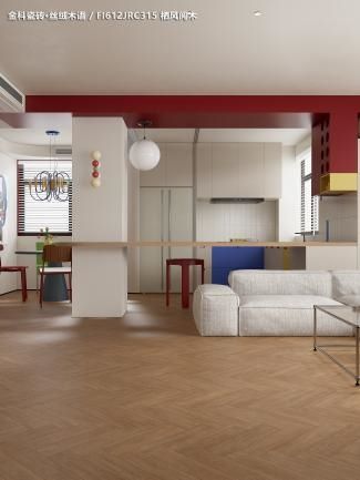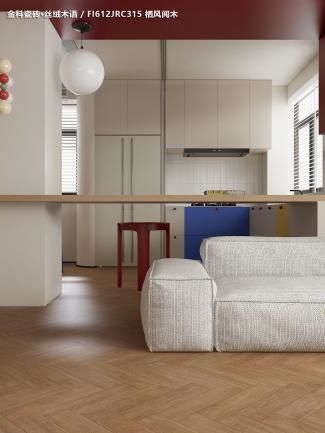 • 空间魔法:600 × 1200规格+人字拼纹理,缝隙少延伸感强。从客厅、餐厅到开放式厨房全屋通铺,整个家通透显大,朋友都问是不是有120平!