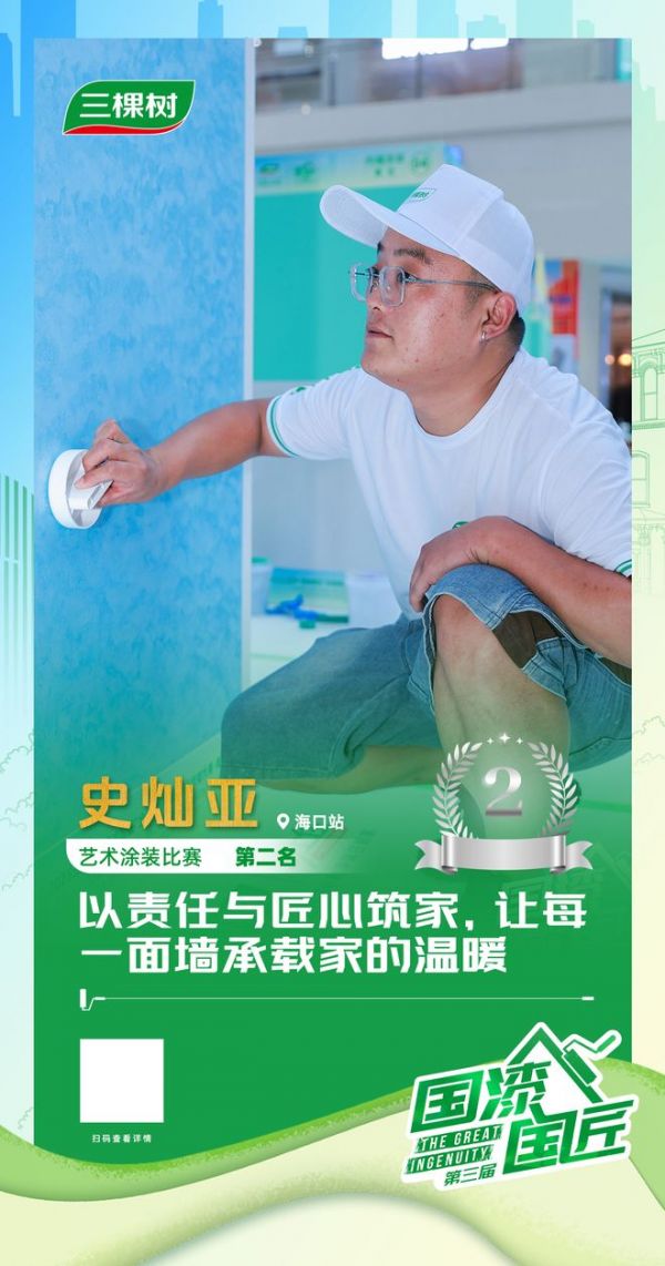 2025三棵树“国漆国匠”大赛海口站艺术涂装银牌匠人史灿亚:以责任与匠心筑家,让每一面墙承载家的温暖