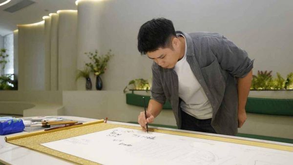 活动以“画笔签到”拉开序幕——嘉宾们用卡百利净醛艺术漆为颜料,在宣纸随性创作,一面素净的纸瞬间化为集体色彩作品。这一别出心裁的开场,既呼应“色彩美学”主题,也让设计师们入场即与色彩“亲密接触”,奠定轻松创意的基调。