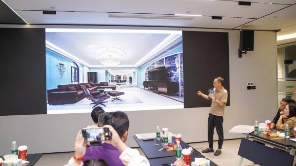 在互动交流环节,围绕““色彩如何营造空间氛围”“艺术漆在设计中的创新应用”等主题,郑诗晓老师与设计师结合实践案例展开讨论,分享色彩在空间氛围营造中的关键作用,探讨艺术漆与家居设计融合的可行路径,为后续合作与创作积累思路。广州营尚室内设计师事务所、深圳合设计顾间有限公司创始人、总设计师谢剑华先生分享了别墅改造案例,生动诠释了“色彩创新往往源于打破常规的勇气”。 现场气氛热烈,思想的火花在交流中不断碰撞,为后续创作与合作积累了新思路。