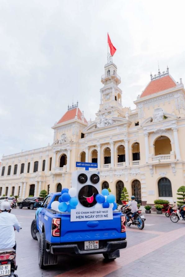 海尔三筒洗衣机途经胡志明市大剧院,行人拍照记录。