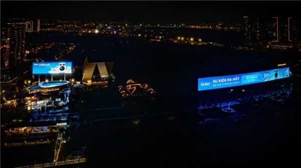海尔三筒洗衣机登上越南最大电子屏幕,与城市夜景交相辉映。