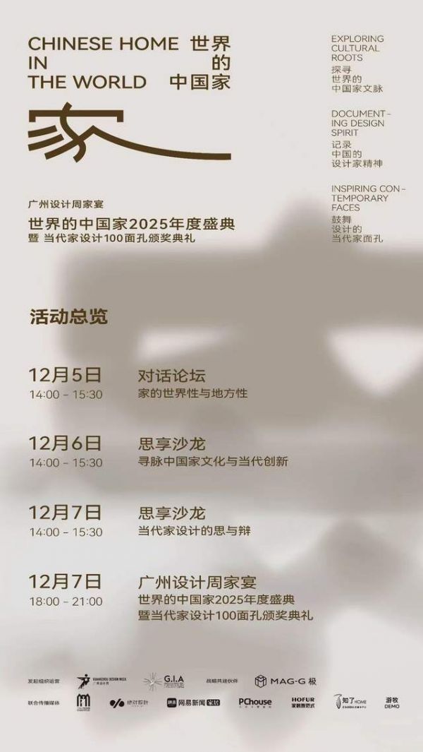 「世界的中国家·2025年度盛典」将于广州设计周同期盛大启幕,活动将包含展位呈现、主题对话论坛、思享沙龙及颁奖典礼等多个环节,共同探讨“当代家”的文化方向与精神秩序,呈现中国家文化在当下的创新表达与时代价值。