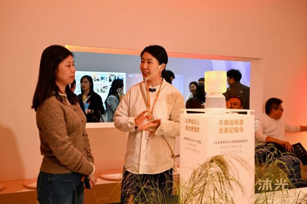 一位来自广东的设计师现场沉浸式体验了沐光AI智能调光的神奇交互功能:“小沐小沐,给我一个海上生明月,天涯共此时的灯光效果”,话音刚落,整个空间就生成了如梦如幻的诗意氛围。这种“所想即所得”的智能交互,正是沐光技术团队从用户需求出发,提供的整套应用落地解决方案 —— 使每个家庭都能拥有轻松易用、不受限制的智能健康灯光环境。