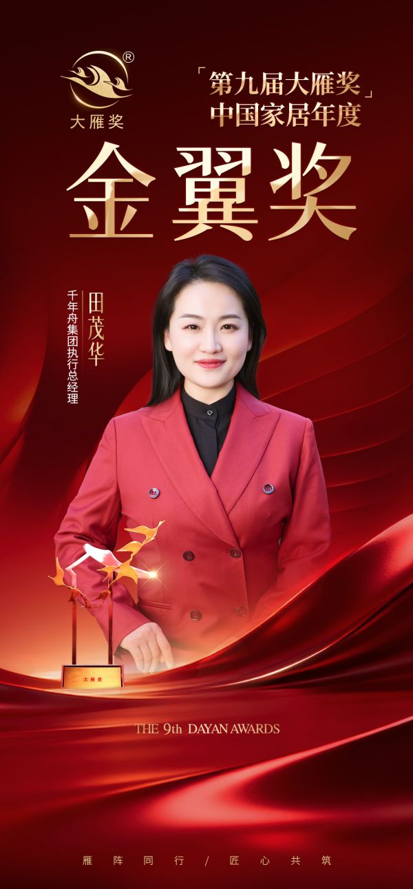 喜报!千年舟集团执行总经理田茂华女士荣膺「第九届大雁奖·中国家居年度金翼人物」奖项