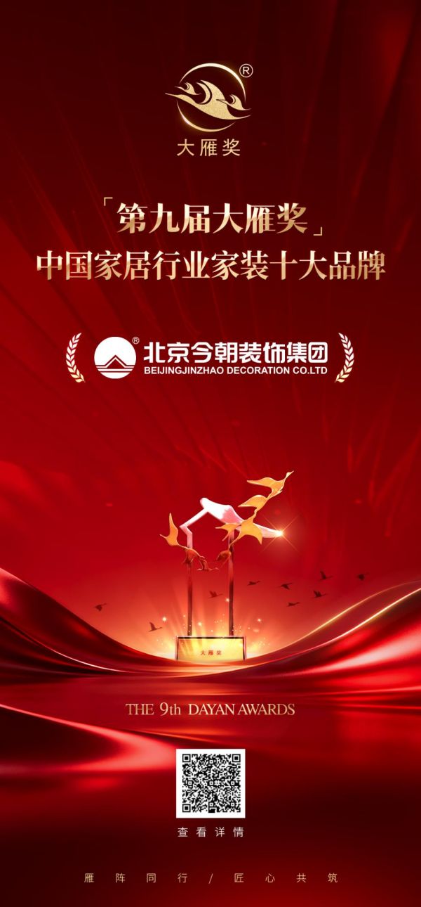 今朝装饰荣膺第九届大雁奖“中国家居行业家装十大品牌” 品质与创新铸就行业标杆
