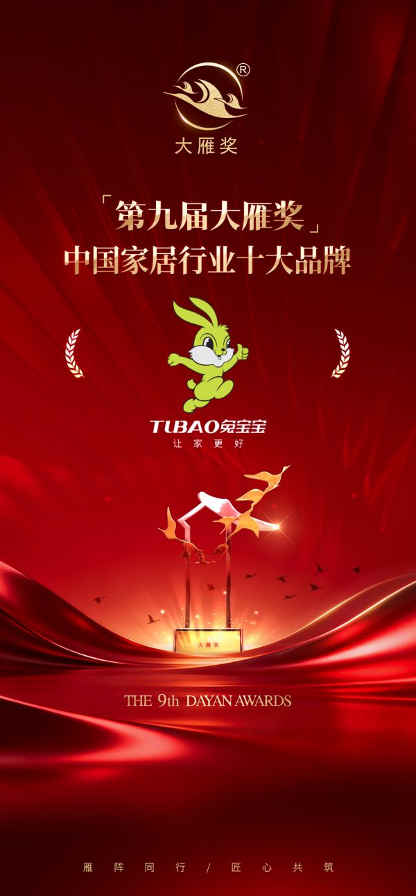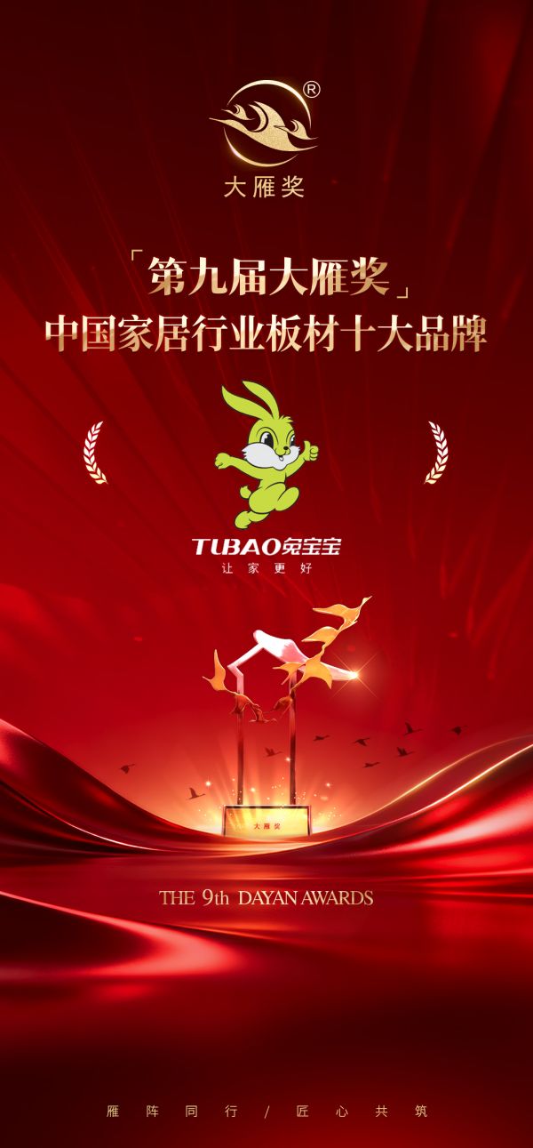 喜报!兔宝宝荣膺「第九届大雁奖·中国家居行业十大品牌」和「第九届大雁奖·中国家居行业板材十...