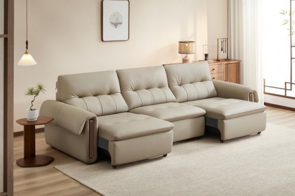 移山沙发提供常规款与电动款两种配置,电动款三个电机独立调节,贵妃、双人位、大床模式随意切换,多场景适用。进口头层牛皮面料,细腻亲肤,耐磨耐用。分段式靠背搭配拉点设计,头颈放松腰背贴合,内填微孔式高弹棉,舒适不落空。座包采用复合恒压高弹海绵,软弹有支撑。高颜值飞檐扶手设计,内嵌实木装饰,为空间注入中式雅致韵味。