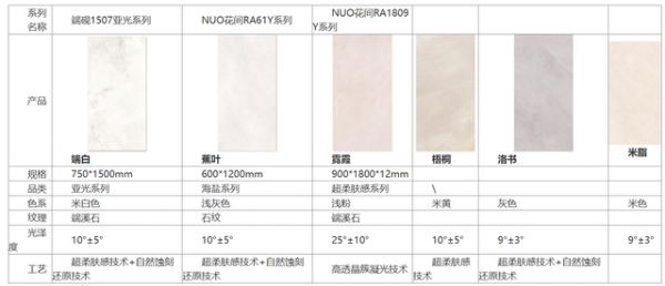 核心产品类型:涵盖超耐磨大理石瓷砖、柔光砖(抗污王)、岩板及超平釉瓷砖等。其中,第4代蓝宝石晶体超耐磨钻石釉系列与超抗污柔光砖为明星产品,实现了“0渗透、超抗污、易清洁、超耐磨”四大硬核性能。