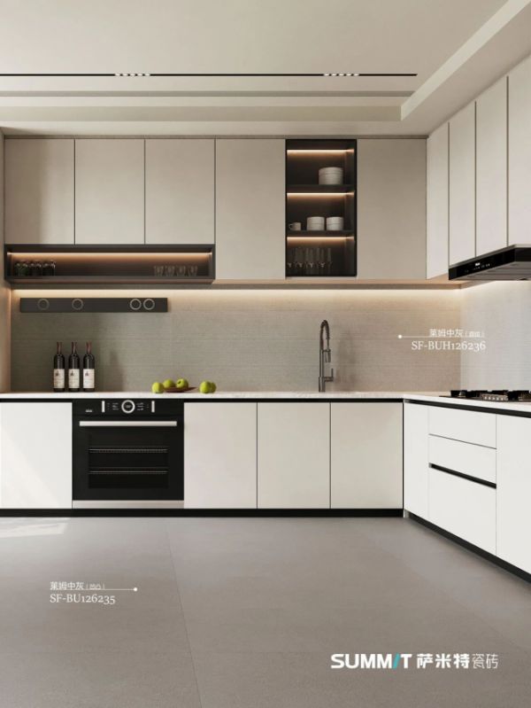 空间的美学表达,离不开合适的尺度。萨米特莱姆石系列精选600×1200mm的黄金规格,这一尺寸既保留了铺贴灵活性,又能通过恰当的比例关系,营造出大气开阔的空间感。无论是客厅地面整铺、厨卫墙地一体铺贴,还是玄关背景墙创意设计,都能兼顾大气观感与低损耗施工需求,为设计师与用户预留了充足的创意发挥空间。
